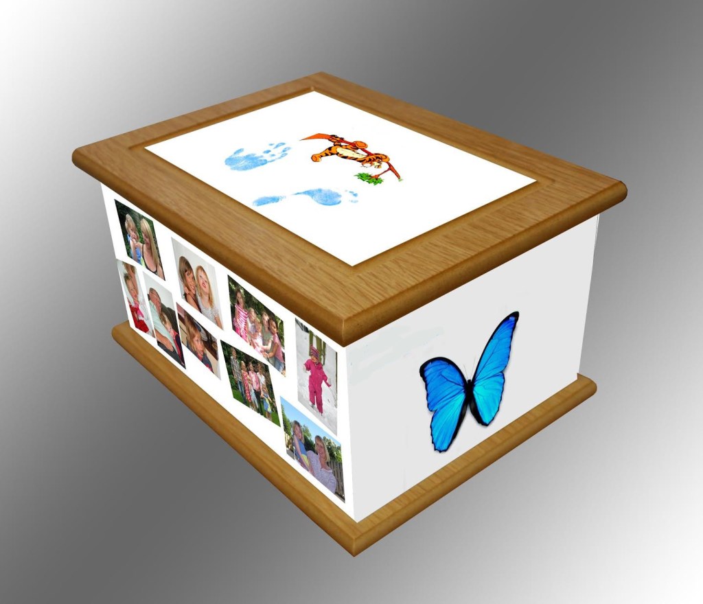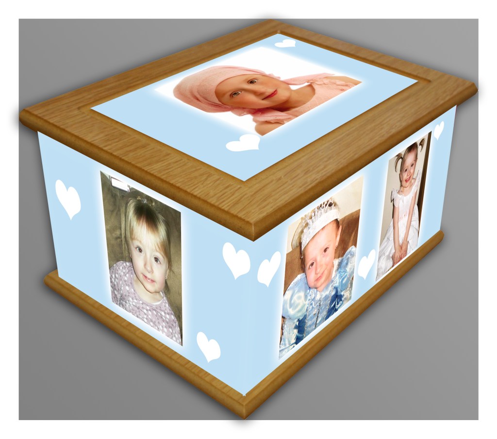 We currently support families who have lost a child by supplying each child in the family with good quality bespoke Memory boxes. The Memory boxes are designed using digital images supplied by the bereaved child – this can be photographs or drawings that the children may have done together or character images, pretty much whatever the child would like, if it can be photographed it can become part of their design. The boxes are A4 in size and wooden so will last for many years to come. The results have been stunning. We also supply each child with a ‘Harvey bear’. This is a standard size soft bear that conceals a secret pouch and can be used to contain ashes or something that is special to that child. This means that the child can always carry something with them that reminds them of their sibling. The Memory boxes are a great therapy and an aid for bereavement support.