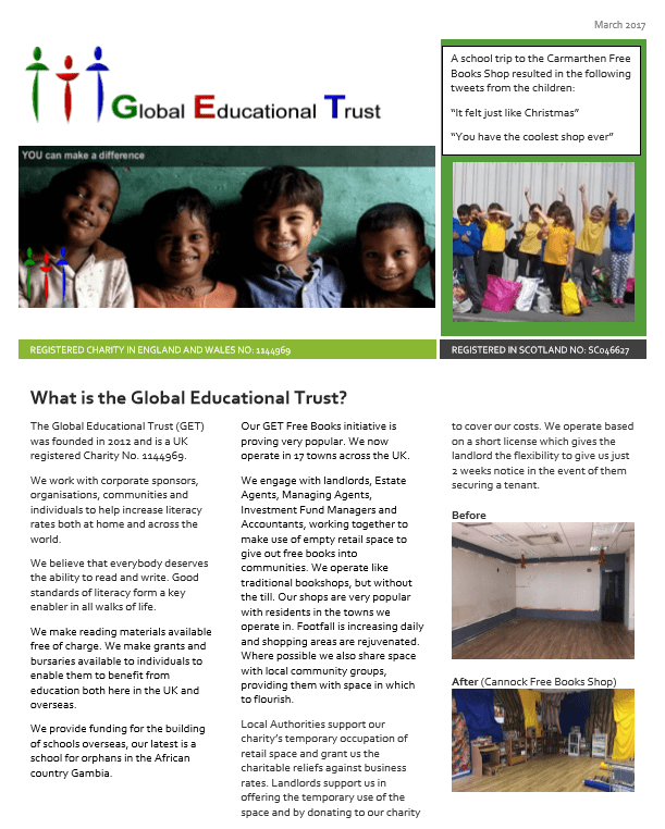 We have recently had a one year birthday celebration for our Global Educational Trust free books shop in Redcar, we were delighted to welcome the local Mayor to cut the cake. In addition to our well established shops we also have a variety of new spaces, in particular in Sale we are pleased that our latest shop is taking shape and gaining interest in the local community. GET plan to accelerate the increase of the number of GET free books shops in the UK, so the news of GETs work and this free books opportunity will become more widely available.