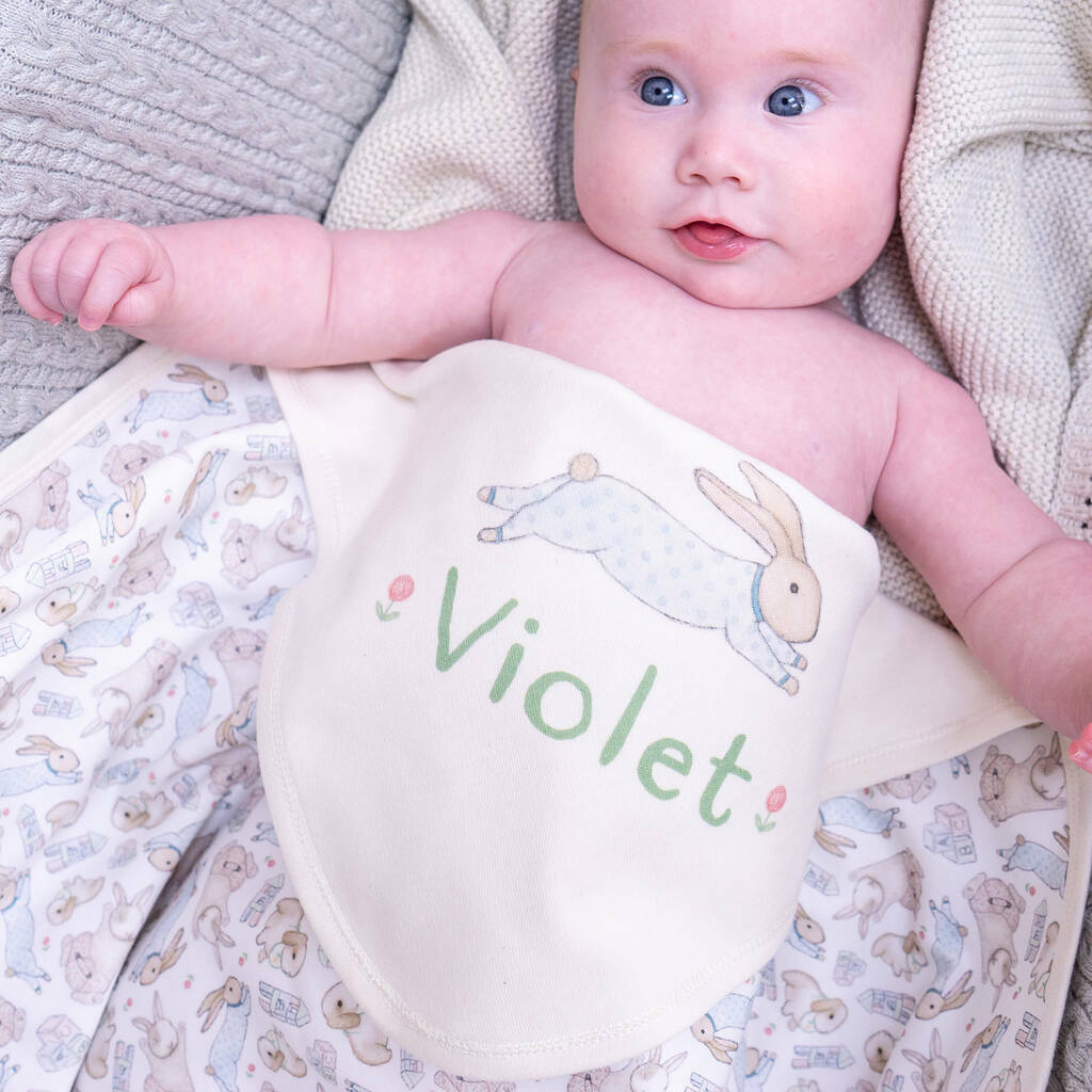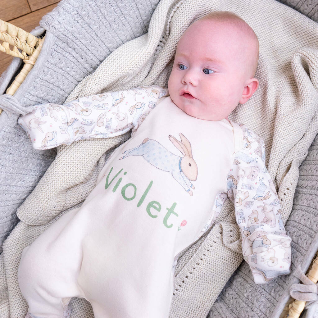 Personalised Organic Illustrated Bunny Baby Sleepsuit