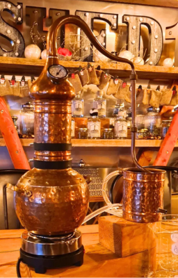 We, Andy & Zoe Arnold-Bennett, started making gin in our 7×7 foot Garden Shed in 2016. In 2019, we moved to The Old Calf Shed and opened a Visitor Space where we host Distillery Tours & Gin Tastings, Botanical-inspired Afternoon G&Teas and our award-winning Make Your Own Distilled Spirit workshops.