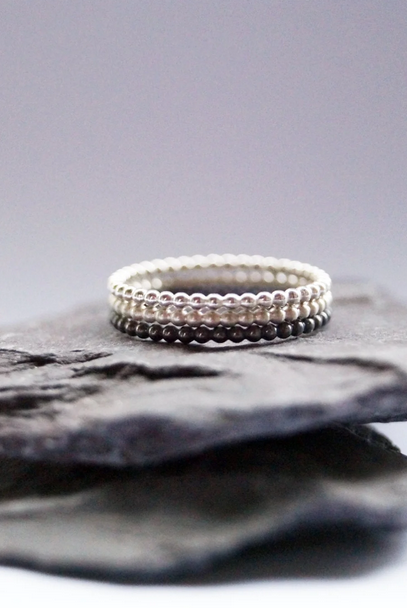 Three Ombre Beaded Recycled Sterling Silver Stacking Rings
