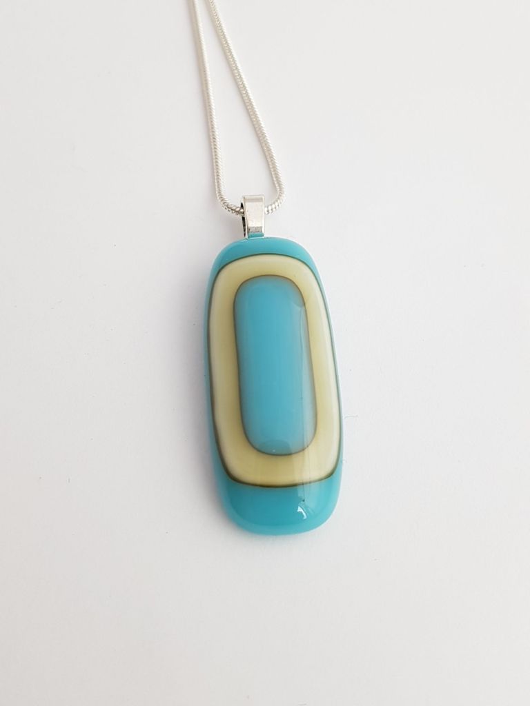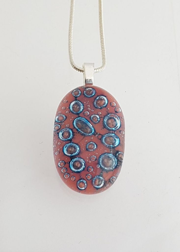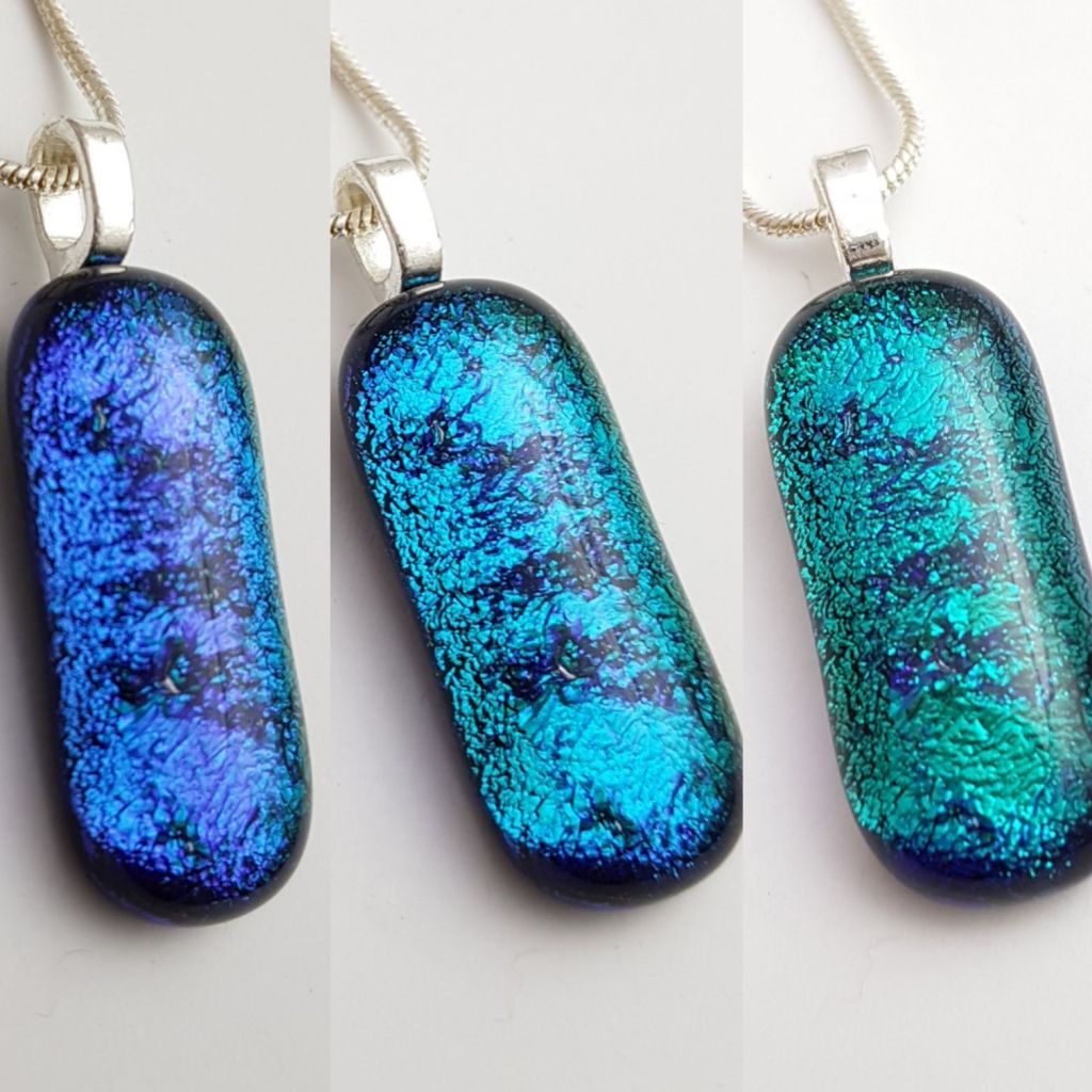Dichroic Glass Pendant Necklace with Pink and Green Colours