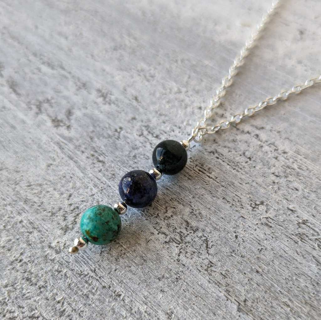 Approximately 19″ necklace with stainless steel chain and lobster clasp
