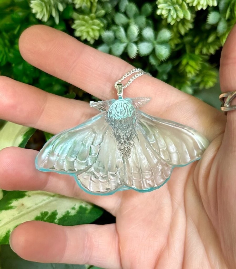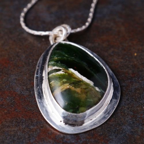 Comes with either a silver plated bail or a 18″ silver plated snake chain or leather chord