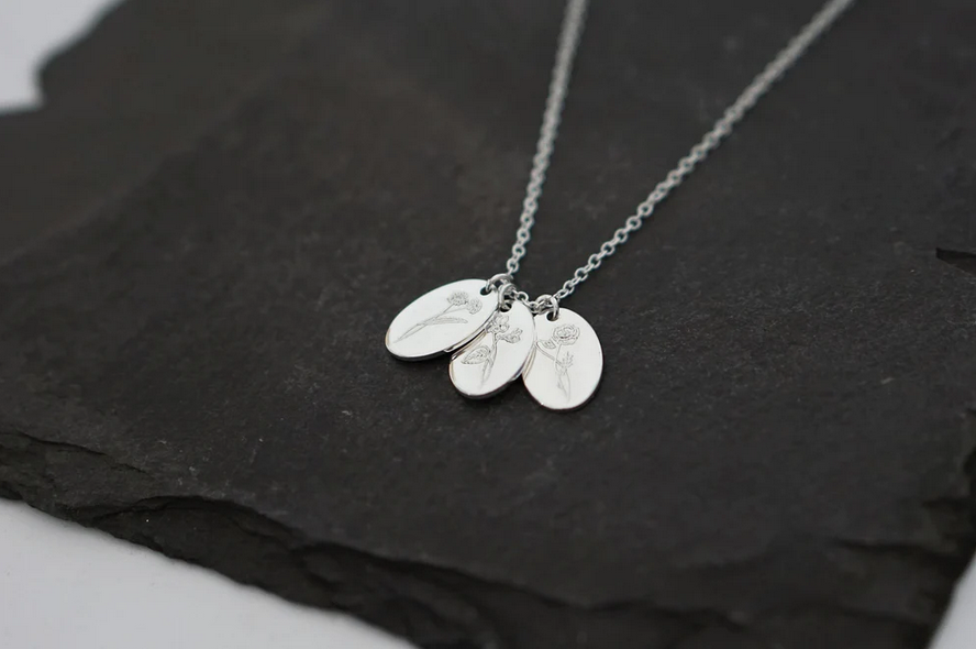 Personalised Oval Birth Flower Sterling Silver Necklace