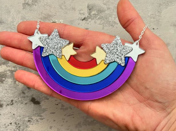 LGBTQ+ Pride Mirrored Rainbow Acrylic Heart Statement Necklace