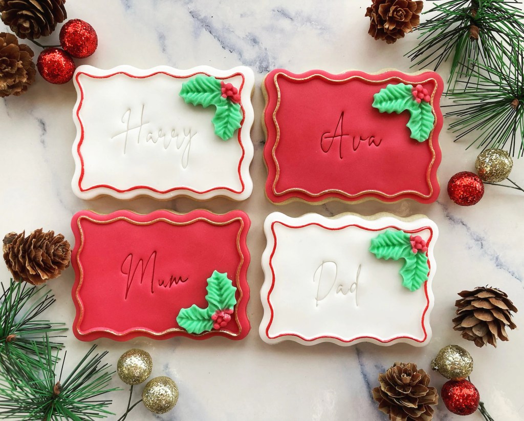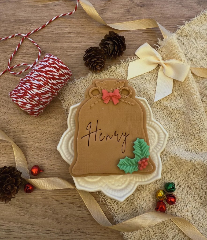 Contains a selection of decorated vanilla biscuits (the stocking can be personalised with an initial), a tube of hot chocolate powder, a tube of marshmallows and chocolate coins
