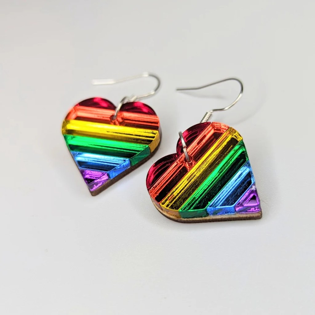 LGBTQ+ Pride Rainbow Mirrored Acrylic Heart Drop Earrings