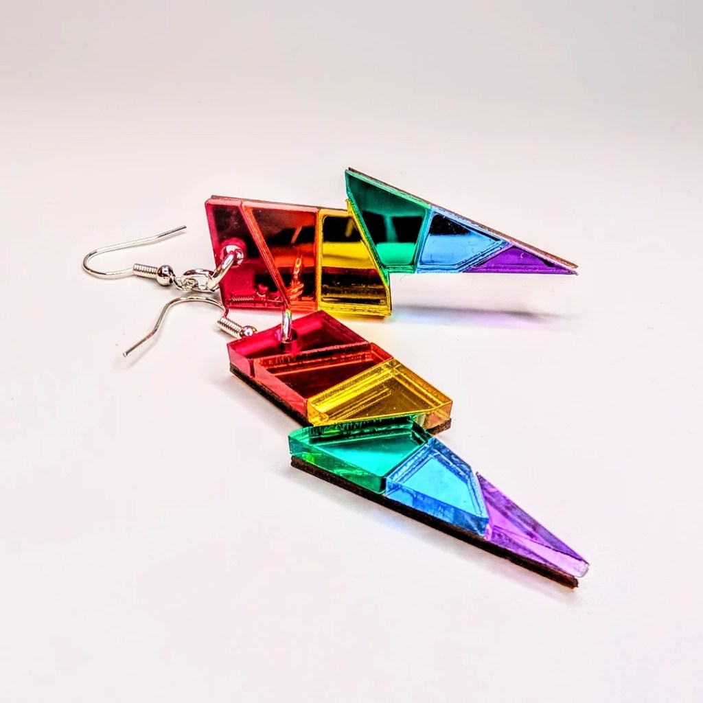 Mirrored Rainbow Acrylic Pride Staggered Lightning Bolt Statement Earrings