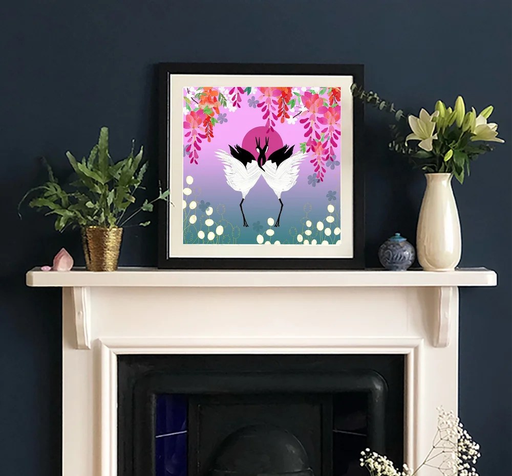 Giclee Fine Art Print – Cranes and Wisteria at Sunrise