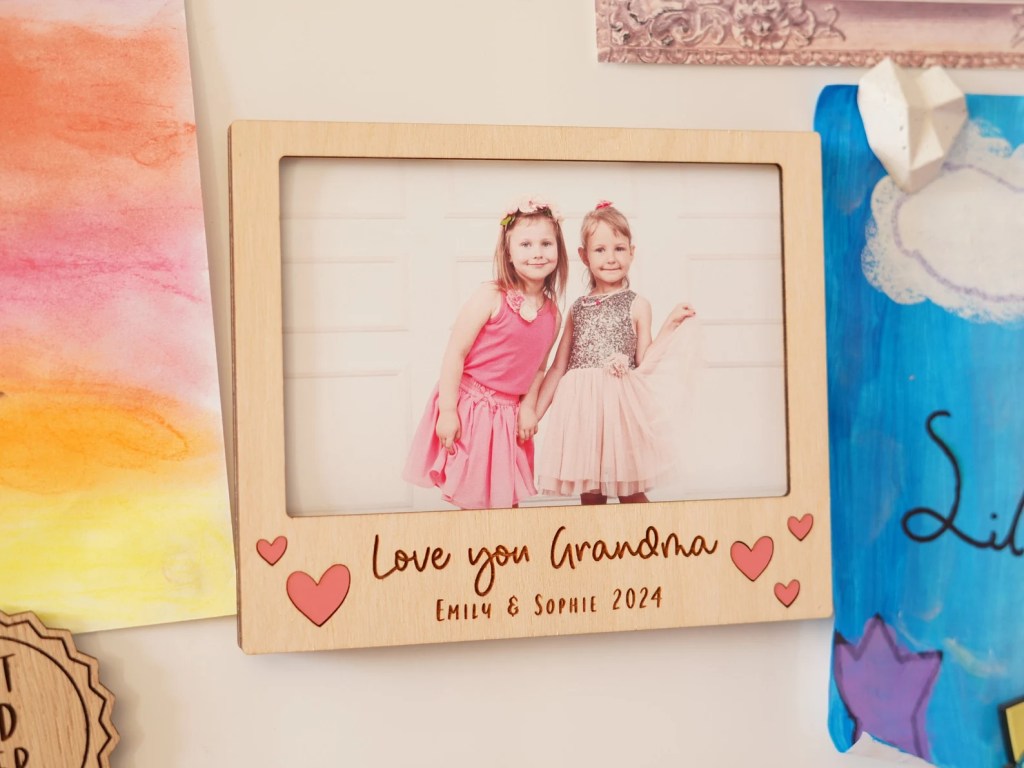 Measuring 13.5 x 17.25 inches, framed in natural Obeche wood
