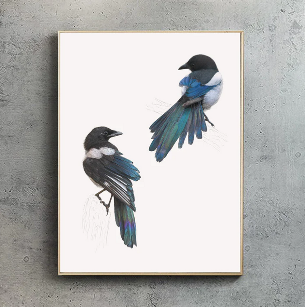 ‘Two for Joy’ is the first print taken from Ben Rothery’s Latest Ladybird Book ‘Unloved’ and features a pair of Eurasian Magpies together